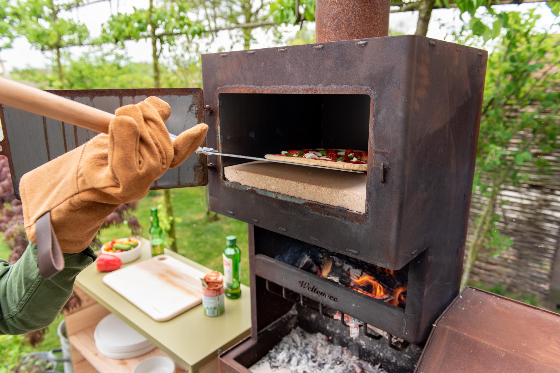 Outdooroven XL은 최고 품질의 3mm 두께 CorTen 강철로 만들어졌으며 일년 내내 외부에 두면 최소 10년 동안 지속됩니다. 피자 칸은 쉽게 350도까지 뜨거워질 수 있습니다.