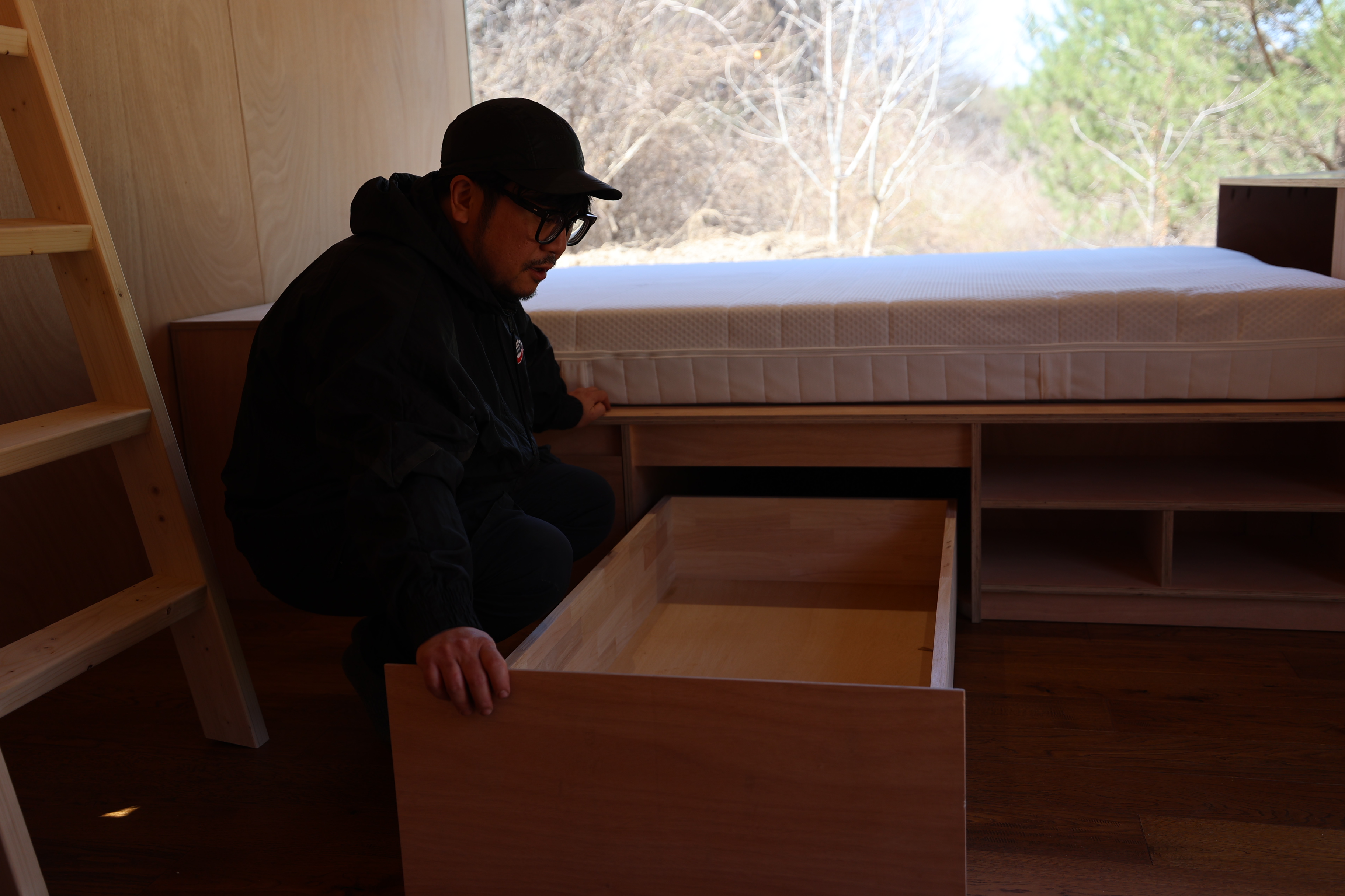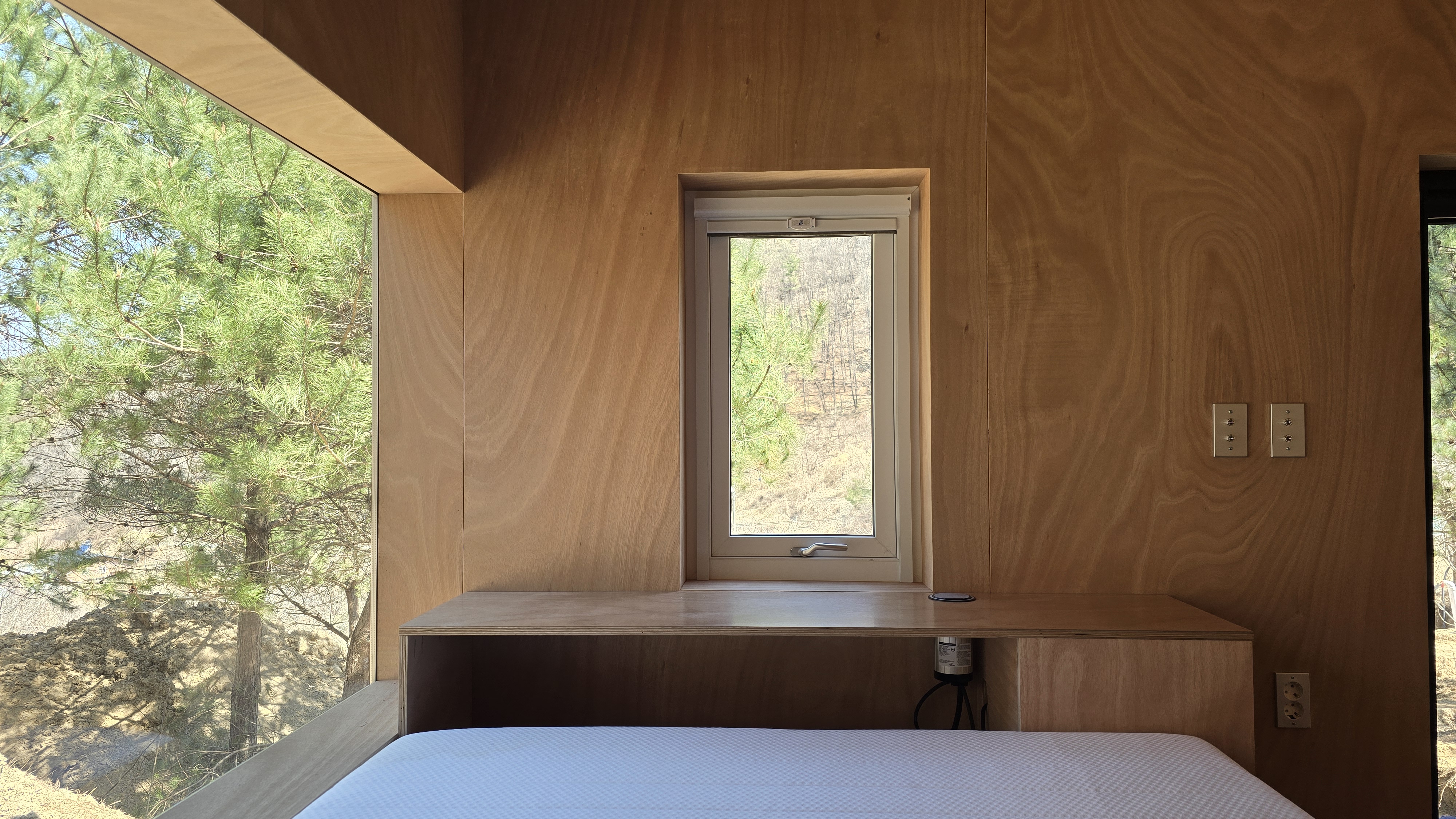 | 내부 가구 | 침대 원목 프레임 (매트리스및 침구류 미포함), 하이커를위한 맞춤 신발장 |