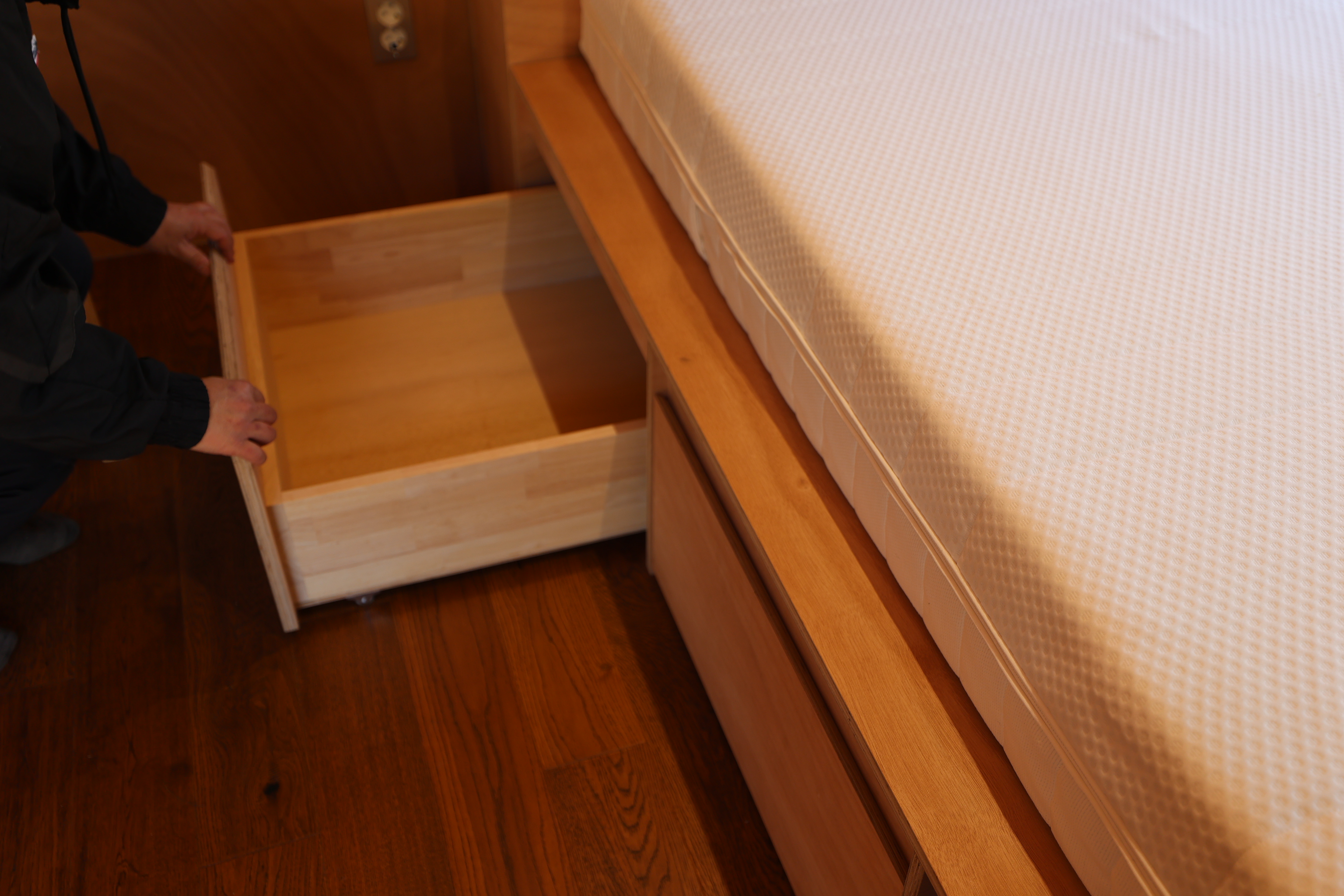침대 아래 수납, 침대 앞 창, 소형 싱크대와 다락까지