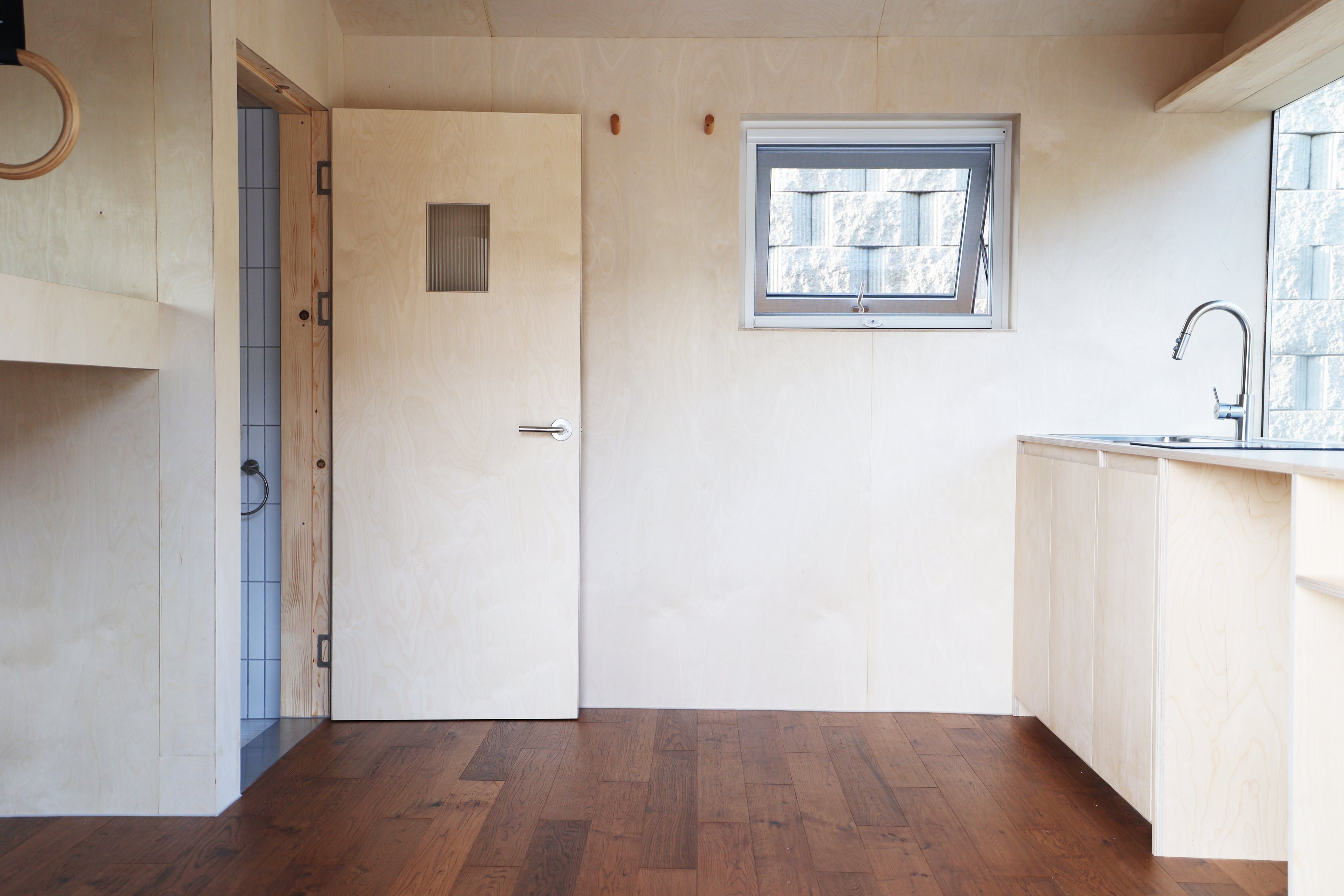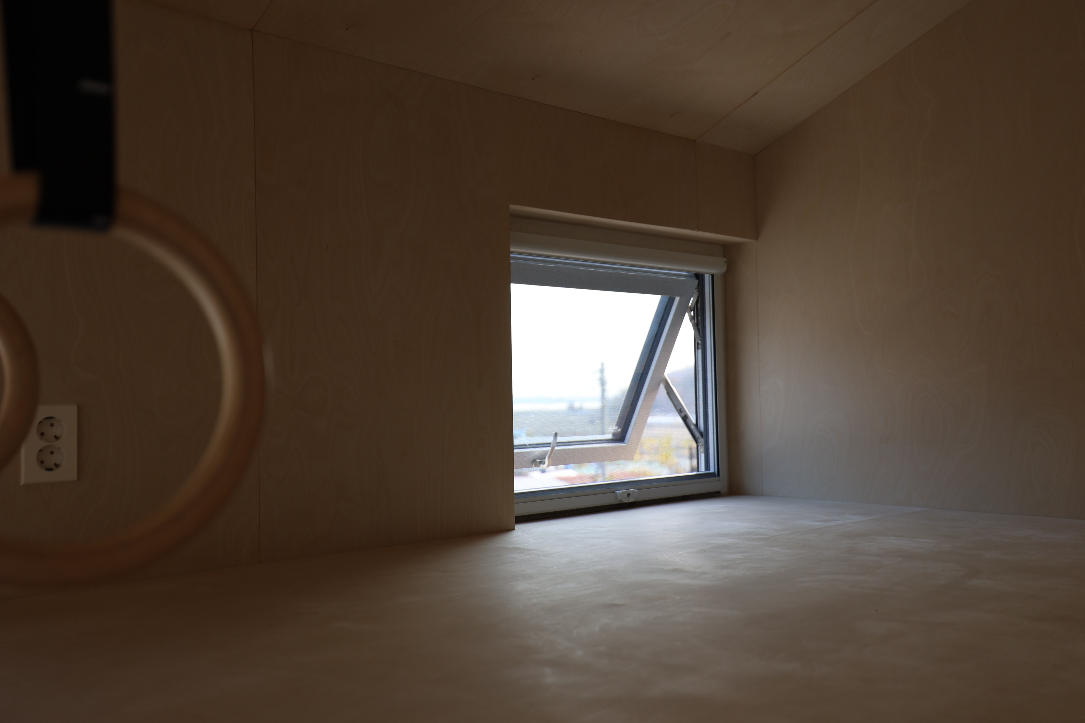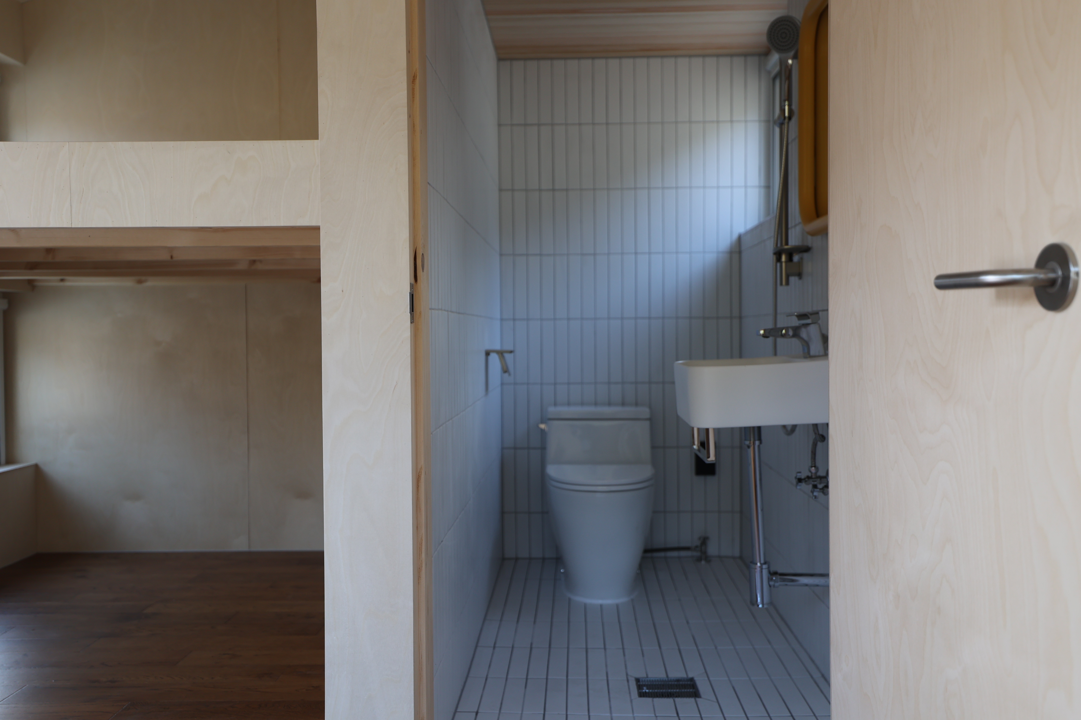 양변기와 샤워겸용 세면대, 환기용 프로젝트 창까지 – 집 전체가 쾌적함을 중심으로 설계되었습니다.