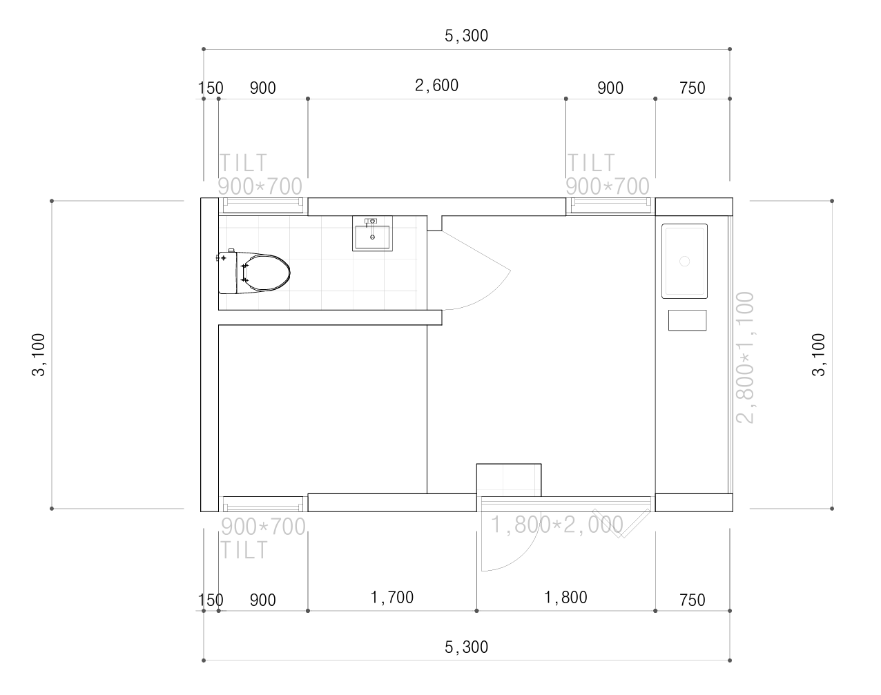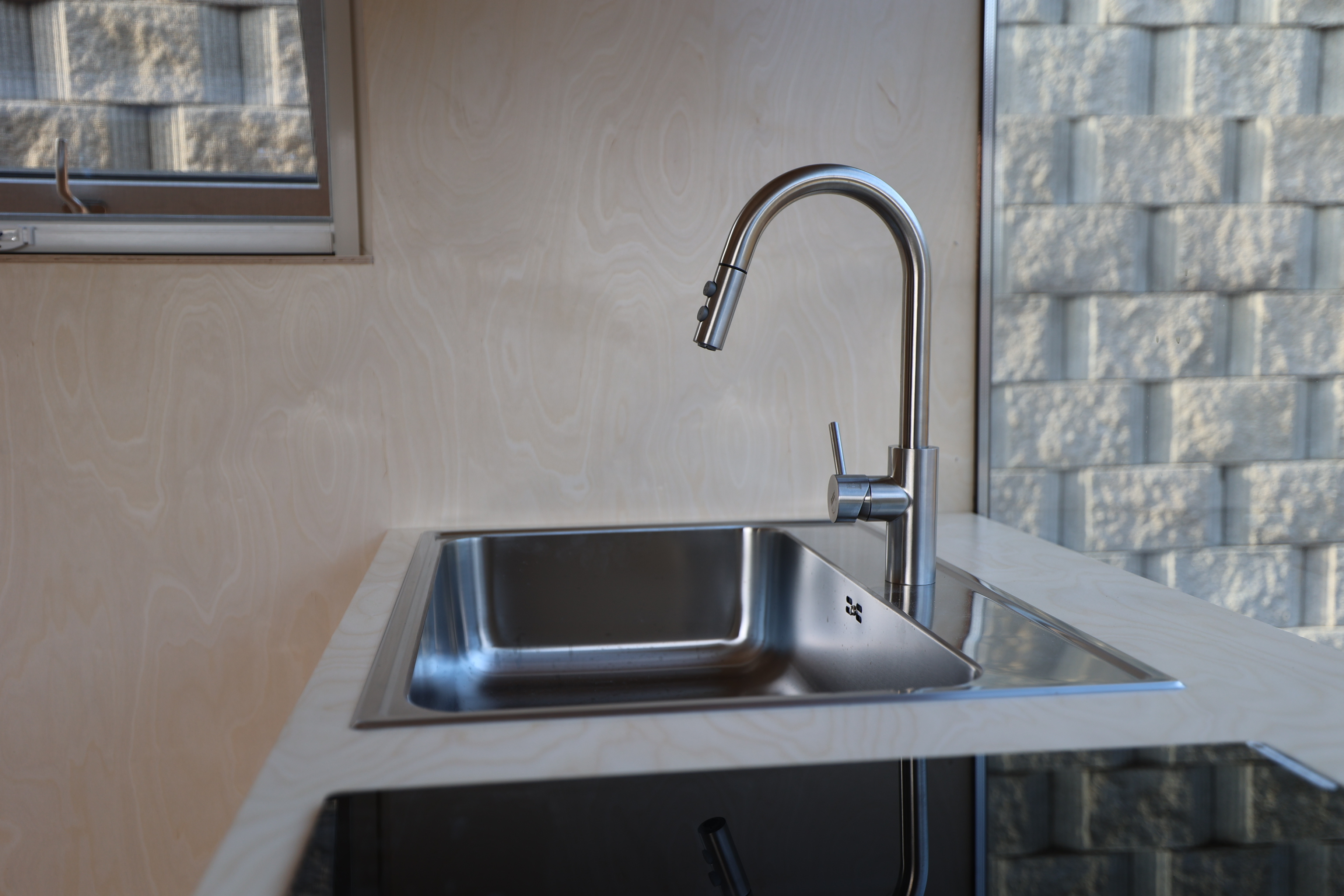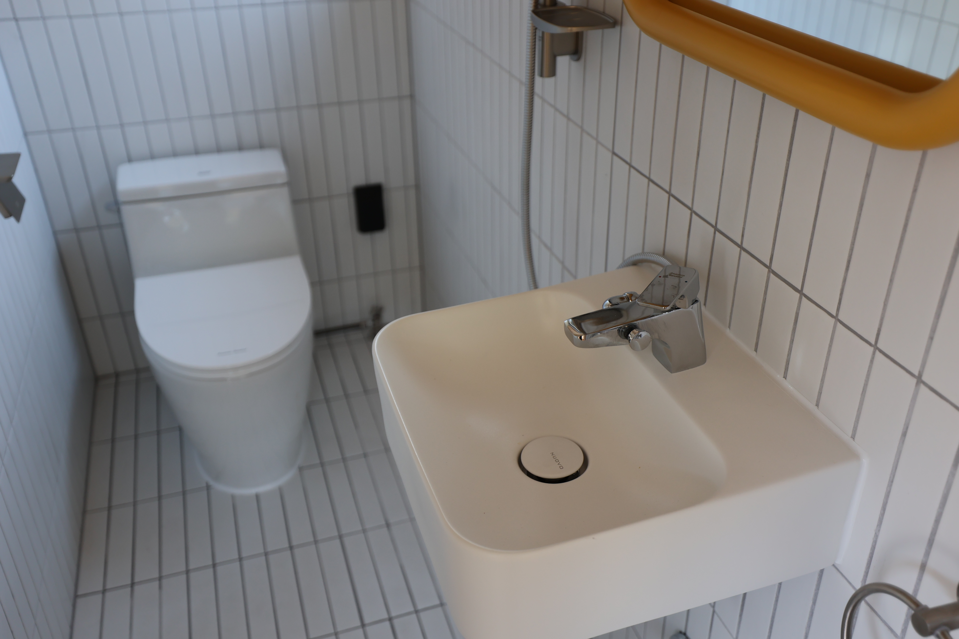 양변기와 샤워겸용 세면대, 환기용 프로젝트 창까지 – 집 전체가 쾌적함을 중심으로 설계되었습니다.