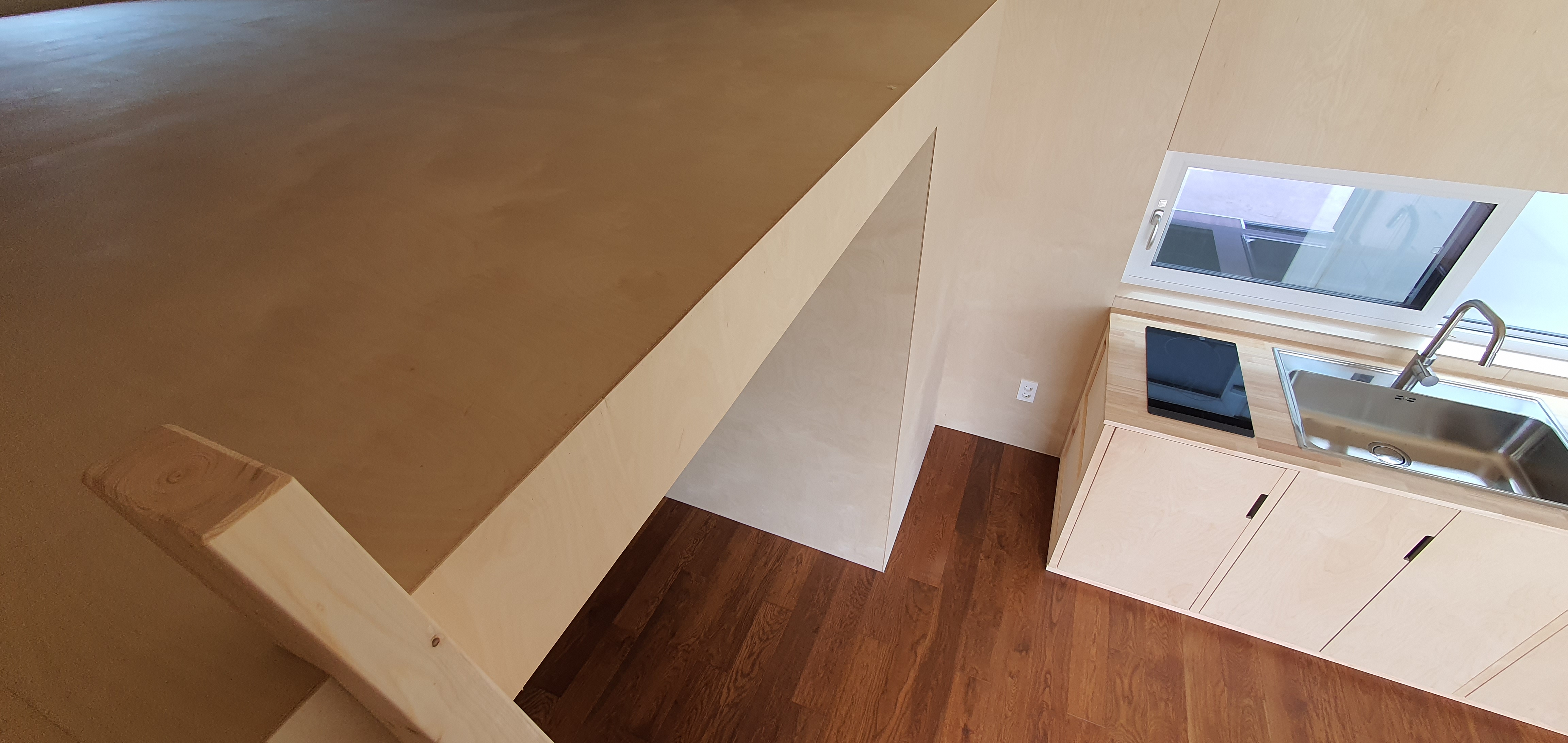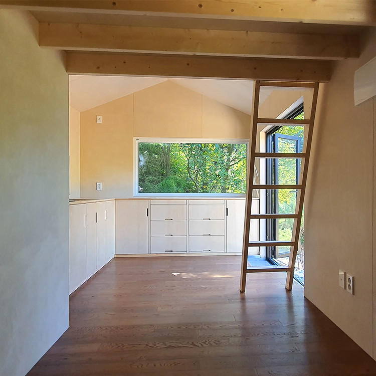 다락 아래는 침실과 욕실, 위는 손님이 머무를 수 있는 수면 공간.