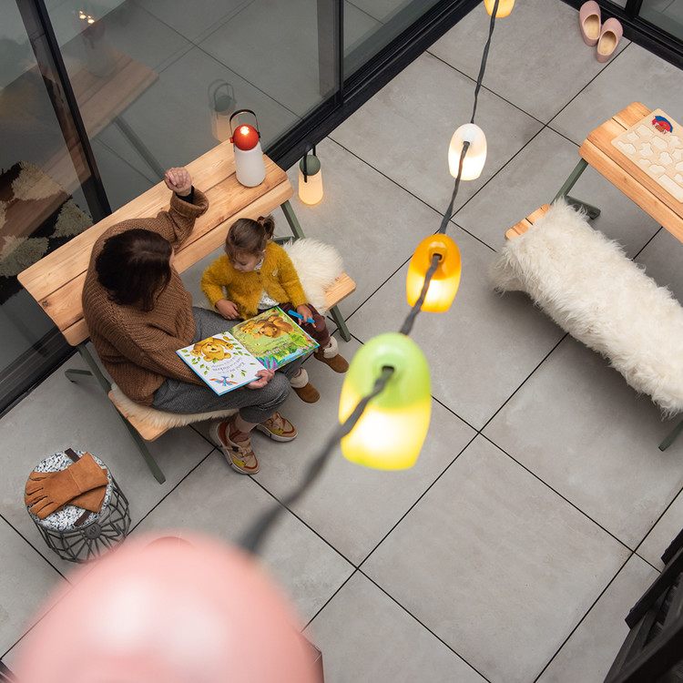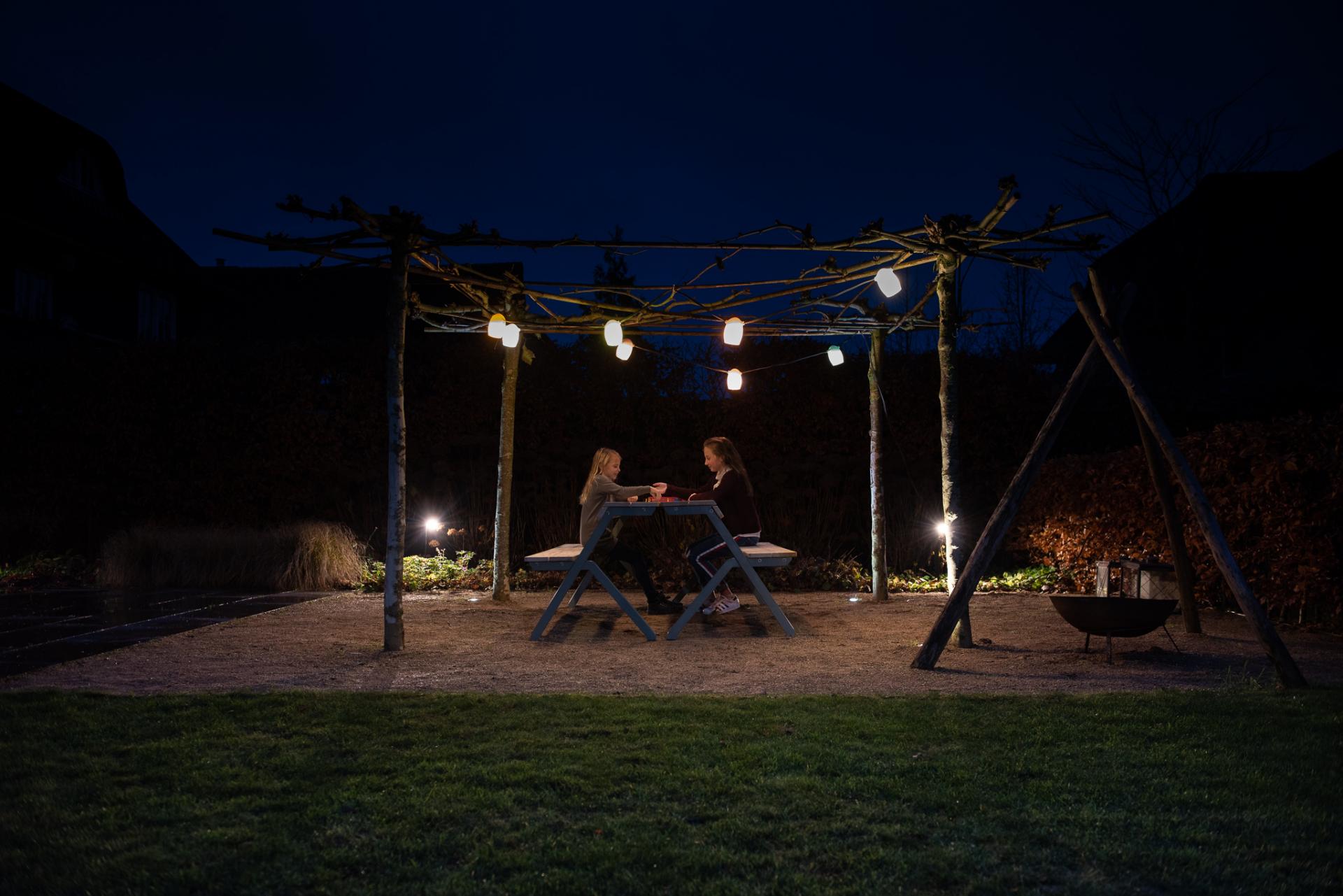 Stringlight는 다양한 색상으로 제공됩니다. 정원 테이블 위, 베란다 아래 또는 나무 사이에 스트링라이트를 걸 수 있습니다. 정원에서 아늑한 음료와 저녁 식사를 즐기며 기분 좋은 조명을 즐겨 보십시오.