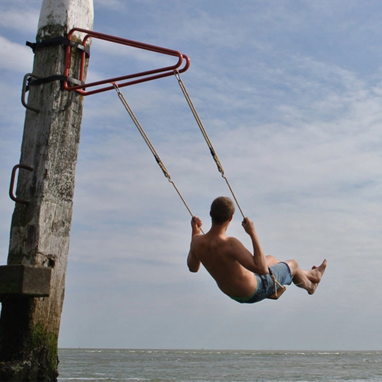 Thor van Kulve의 디자인은 강철 삼각형, 스트랩, 나무 그네 및 두 개의 로프로 구성됩니다. 이러한 간단한 요소의 조합을 통해 원하는 곳에 그네를 걸 수 있습니다.