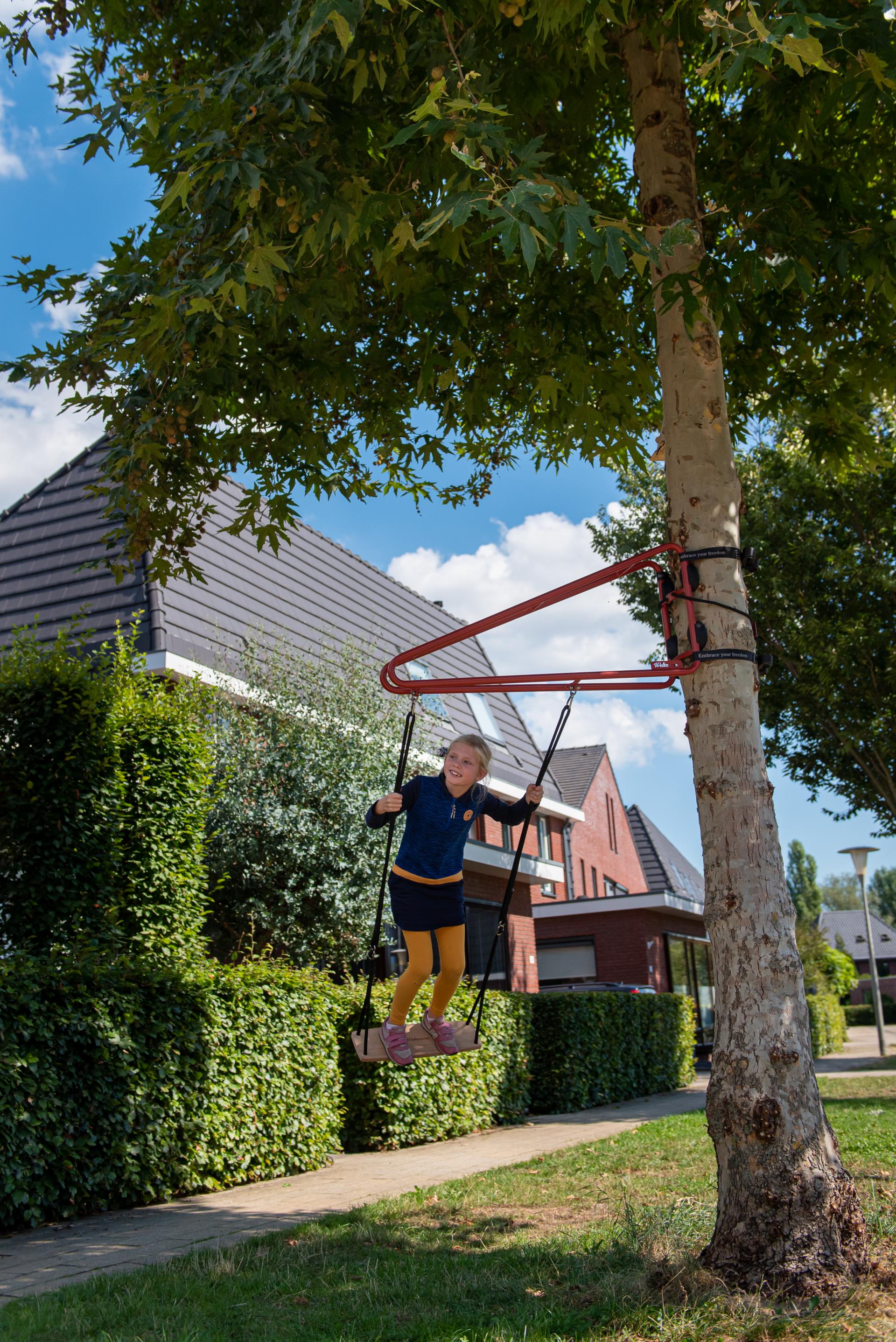Thor ter Kulve가 디자인한 그네는 모든 장소를 놀이터로 바꿔줍니다. 그네를 기둥이나 나무에 부착하기만 하면 완전히 새로운 방식으로 주변을 발견할 수 있습니다. 그네를 부착하는 데 사용되는 스트랩은 둘레가 최대 2m인 나무에 적합합니다.