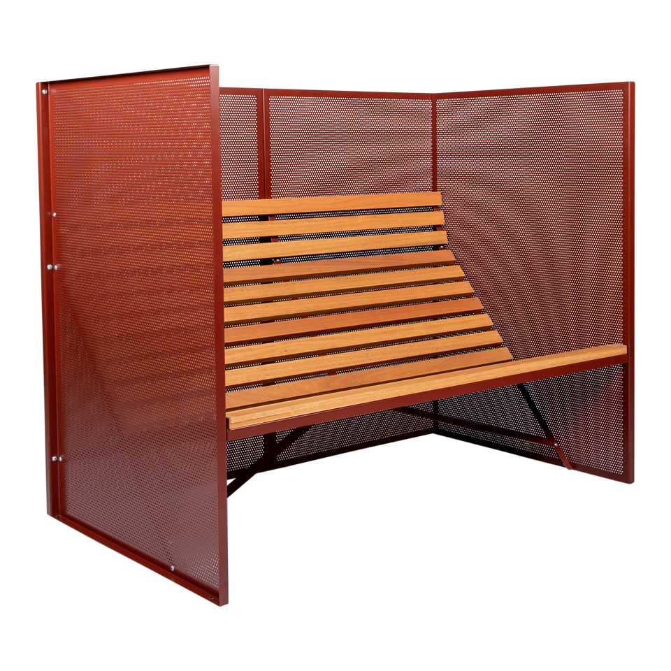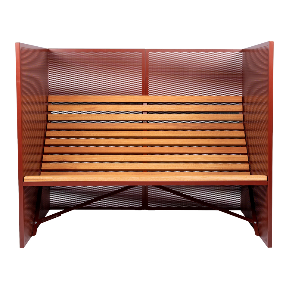 분말 코팅된 강철 프레임은 유칼립투스 나무 시트를 위한 안정적인 기반을 제공합니다. 벤치는 2인이 사용하기에 편안하고 3인이 사용하기에 아늑합니다.